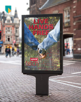 magazine, street billboard, and bus stop sign ads for the brand extension of a jean company into the new age technology.